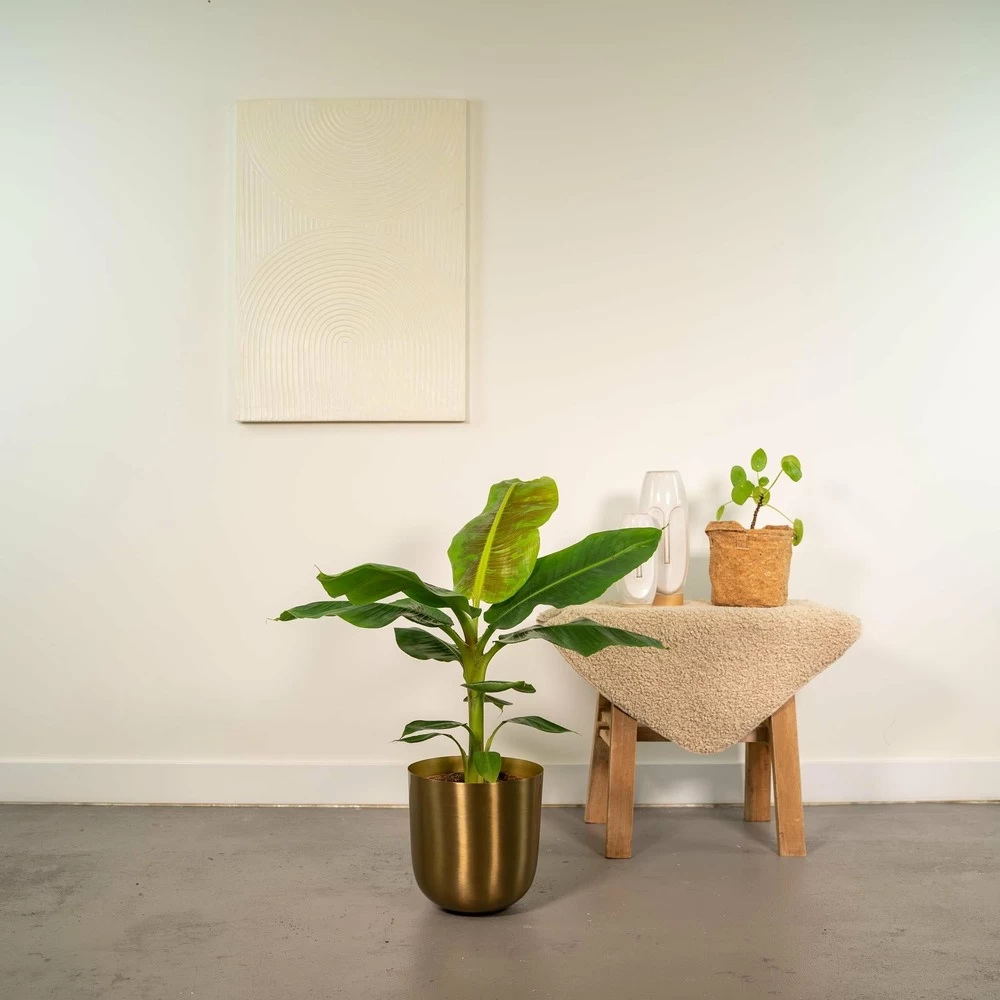 Le bananier nain cavendish est une plante vivace originaire des régions tropicales d’asie du sud-est. Il est caractérisé par de grandes feuilles vertes qui forment une couronne en forme d’éventail. Placez la plante dans un endroit lumineux avec une lumière indirecte. Les bananiers nains cavendish ont besoin de beaucoup de lumière pour une croissance optimale. Une fenêtre orientée au sud ou à l’ouest est généralement idéale. Arrosez régulièrement pour maintenir le sol légèrement humide. Les bananiers nains cavendish ont besoin d’un bon drainage, il est donc préférable de laisser sécher légèrement le sol entre les arrosages. Évitez de laisser la plante dans une soucoupe d’eau stagnante pour éviter la pourriture des racines.