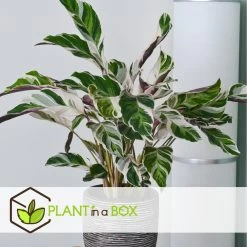 Le calathĂ©a fusion blanc n’est pas seulement une plante magnifique, c’est aussi une plante rare ! Ce n’est pas souvent que l’on voit un calathea avec une panachure blanche. Le calathea fusion white est sĂ»r de voler la vedette Ă n’importe quel intĂ©rieur avec ses feuilles Ă©poustouflantes ! Le calathea est originaire de la jungle sud-amĂ©ricaine oĂą il pousse Ă l’ombre de plantes et d’arbres plus grands. Elles sont donc parfaites pour un endroit plus sombre de la maison. La calathea est aussi connue sous le nom de ‘plante vivante’, car elle ferme ses feuilles le soir pour les rouvrir le matin. Si tu es très silencieux, tu peux mĂŞme entendre le bruissement ! Le calathea fusion white est livrĂ© avec une hauteur de 30-40 cm (mesurĂ©e avec le pot).