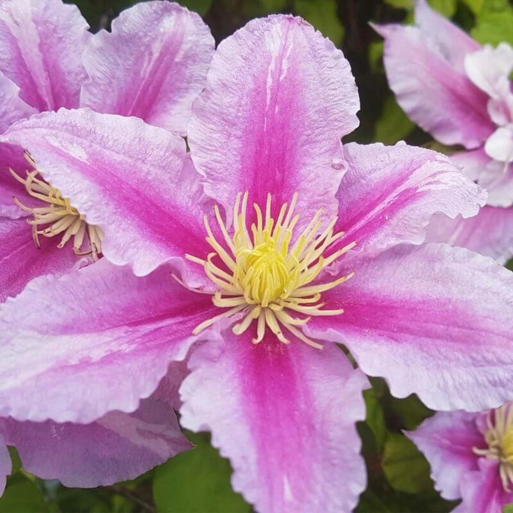 la clĂ©matite ‘carnaby’ est une variĂ©tĂ© de clĂ©matite Ă la floraison rose claire. Très lumineuses, ses fleurs apparaissent de mai Ă juin puis d’aoĂ»t Ă septembre.