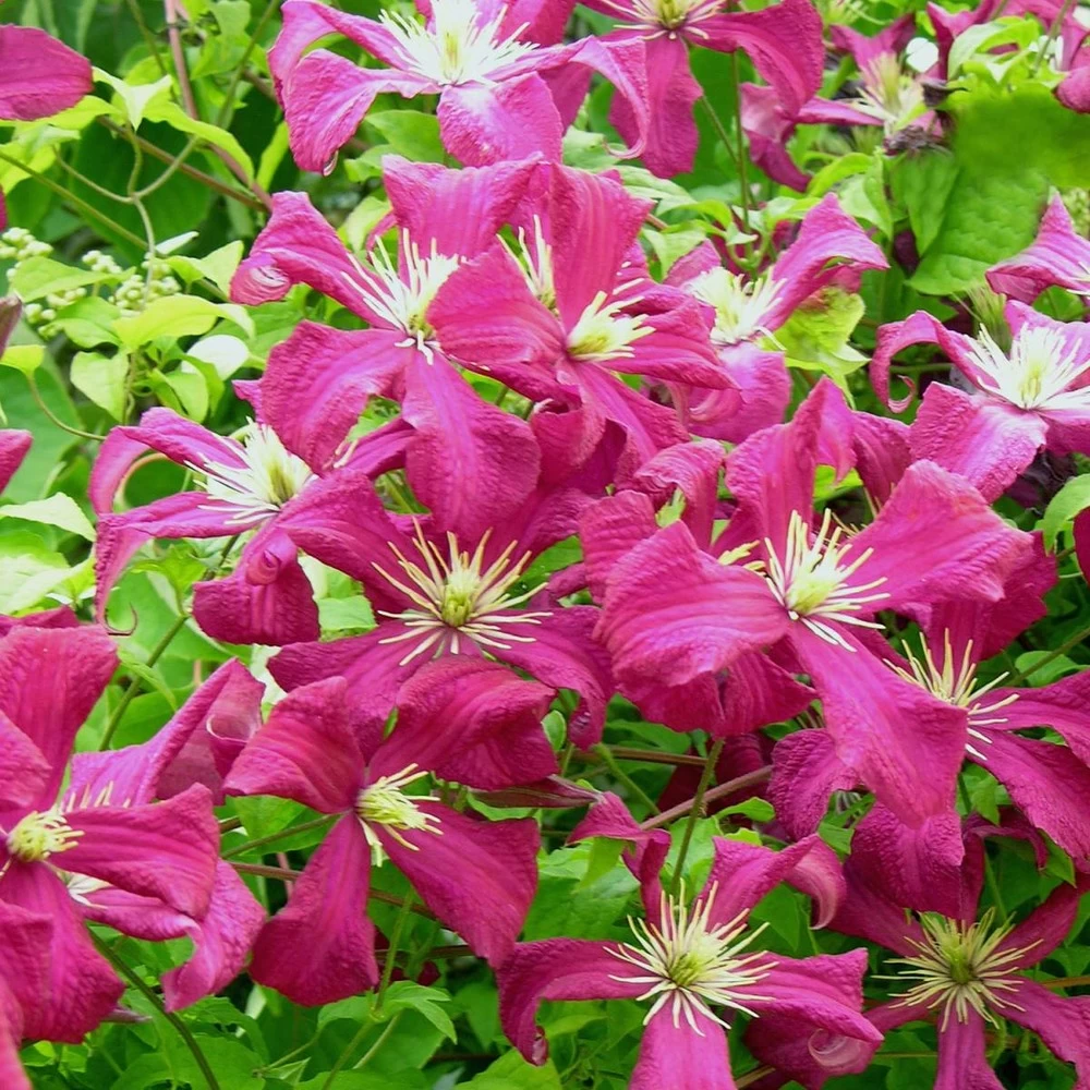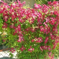 fleurs en clochettes rouge Ă©carlate. Cette jolie clĂ©matite a Ă©tĂ© obtenue en france vers 1900, elle est issue d’un croisement entre la clĂ©matite ville de lyon et la clĂ©matite rubra grandiflora.