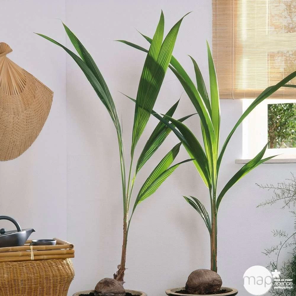 Espèces et variĂ©tĂ©s : le genre Cocos ne comprend qu’une seule espèce. Le palmier parfois comercialisĂ© sous l’appellation Cocos weddeliana se nomme en rĂ©alitĂ© Microcoelum weddelianum. HumiditĂ© de l’air : minimun 70% sinon les pointes des palmes brunissent et les feuilles entières sèchent. Brumisez le feuillage trois Ă quatre fois par jour et posez le pot sur des graviers humides. LongĂ©vitĂ© : rarement plus de 2 ou 3 ans, en pot
