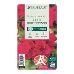 Le Géranium zonale (pelargonium ) de 35 à 50cm, c’est une lignée d’hybrides issus des P.Inquinans et zonale, au port érigé, buissonnant. Les feuilles larges et rondes sont vertes, avec une zone sombre caractéristique (parfois absente chez certaines variétés). Les fleurs, simples ou doubles, de 1 à 2 cm de diamètre, sont regroupées en fausses ombelles plus ou moins rondes, portées par des pédoncules rigides, à l’aisselle des feuilles supérieures. La floraison se détache nettement au-dessus du feuillage et se prolonge jusqu’aux premières gelées. Les tons bleus et jaunes n’existent pas.