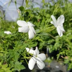 Plante grimpante. Jasmin Ă petites fleurs blanches, très parfumĂ©es. Feuillage vert. Plante Ă tige volubile s’enroulant naturellement autour d’un support. AgrĂ©able parfum. ProtĂ©ger la plante des grands froids (rusticitĂ© : -5 c).
