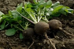 le radis d’hiver espagnol forme de grandes racines rondes, noires, fermes et aromatiques avec une excellente qualitĂ© de stockage. Le sĂ©nevĂ© conservĂ© dans le tissu de stockage donne au radis son goĂ»t. il faut attendre 8 Ă 10 semaines pour les radis d’Ă©tĂ© et 13 Ă 15 semaines pour les radis d’hiver jusqu’Ă la rĂ©colte. En cas de doute, rĂ©coltez un peu plus tĂ´t, car les radis rĂ©coltĂ©s trop tard deviennent ligneux. Lorsque vous compressez la betterave entre le pouce et l’index, elle ne doit pas relâcher. En gĂ©nĂ©ral, les radis ne sont pas prĂ©parĂ©s, mais mangĂ©s frais. Pour ce faire, ils peuvent ĂŞtre consommĂ©s coupĂ©s en morceaux ou rassemblĂ©s avec des dips ou des vinaigrettes. Une utilisation populaire est avec la bière, oĂą le radis coupĂ© en morceaux est mangĂ© avec la bière. Le radis est aussi idĂ©al dans les plats asiatiques. Ils sont coupĂ©s en broches comme les carottes et mis dans du sel pendant 15 minutes, puis ajoutĂ©s après avoir Ă©tĂ© rincĂ©s au froid. Les betteraves de printemps et d’Ă©tĂ© rĂ©coltĂ©es peuvent ĂŞtre stockĂ©es dans un torchon dans le rĂ©frigĂ©rateur pendant trois jours au plus. Ensuite, elles deviennent molles et caoutchouteuses. Les radis d’automne et d’hiver peuvent rester dans des endroits avec une forte humiditĂ© et des tempĂ©ratures proches du point de congĂ©lation pendant plusieurs mois.