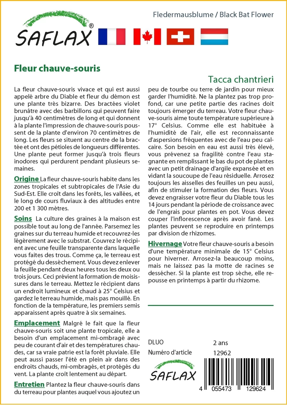 saflax – kit de culture – fleur chauve-souris – 10 graines – avec mini-serre, substrat de culture et 2 pots – tacca chantrieri