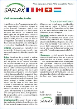 emplacement: en raison de son origine dans les hautes altitudes, le vieil homme des andes demande un endroit ensoleillĂ© et des diffĂ©rences de tempĂ©rature considĂ©rables entre jour (au moins 15° celsius) et nuit (en-dessous de 5° celsius). Il passe l’Ă©tĂ© dans le jardin ou sur le balcon avec une protection contre le vent et la pluie.