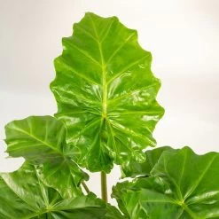 Alocasia portodora est une plante à feuilles larges et exotiques, connue pour sa taille impressionnante. Ses feuilles sont en forme de flèche, d’un vert foncé brillant et peuvent mesurer jusqu’à 1 mètre de long. Placez l’alocasia portodora dans un endroit lumineux, mais évitez une exposition directe au soleil. Elle préfère une lumière filtrée ou un éclairage modéré. Gardez le sol légèrement humide en arrosant régulièrement. Assurez-vous que le sol ne devienne pas détrempé, car cela peut causer la pourriture des racines. Laissez sécher légèrement la couche supérieure du sol avant d’arroser à nouveau.
