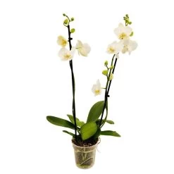 Les hampes florales des grands Phalaenopsis ont tendance Ă plier sous le poids des fleurs. Plantez un tuteur au fond du pot et attachez le Ă plusieurs endroits sur la hampe