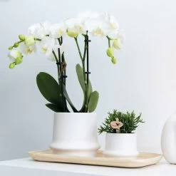 Haworthia Limifolia Et Son Cache-pot Blanc – H16cm, ø9cm – Plante D’intérieur