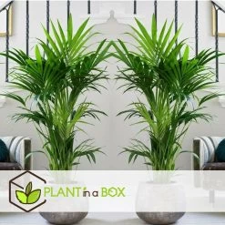 Le palmier kentia, Ă©galement connu sous le nom de howea forsteriana, est un palmier Ă croissance relativement lente. Le palmier est originaire d’ocĂ©anie et est très populaire de nos jours comme plante d’intĂ©rieur. Cette grande plante apportera sans aucun doute une atmosphère exotique Ă votre bureau ou Ă votre salon. Le forsteriana est la seule espèce de kentia qui est cultivĂ©e sous notre climat. Il appartient Ă la famille des palmiers. Il a une croissance gracieuse et des feuilles souples d’un beau vert foncĂ© brillant. C’est Ă©galement l’une des plus anciennes plantes d’intĂ©rieur. La plante est livrĂ©e avec une hauteur de 130-140cm (mesurĂ©e y compris le pot).